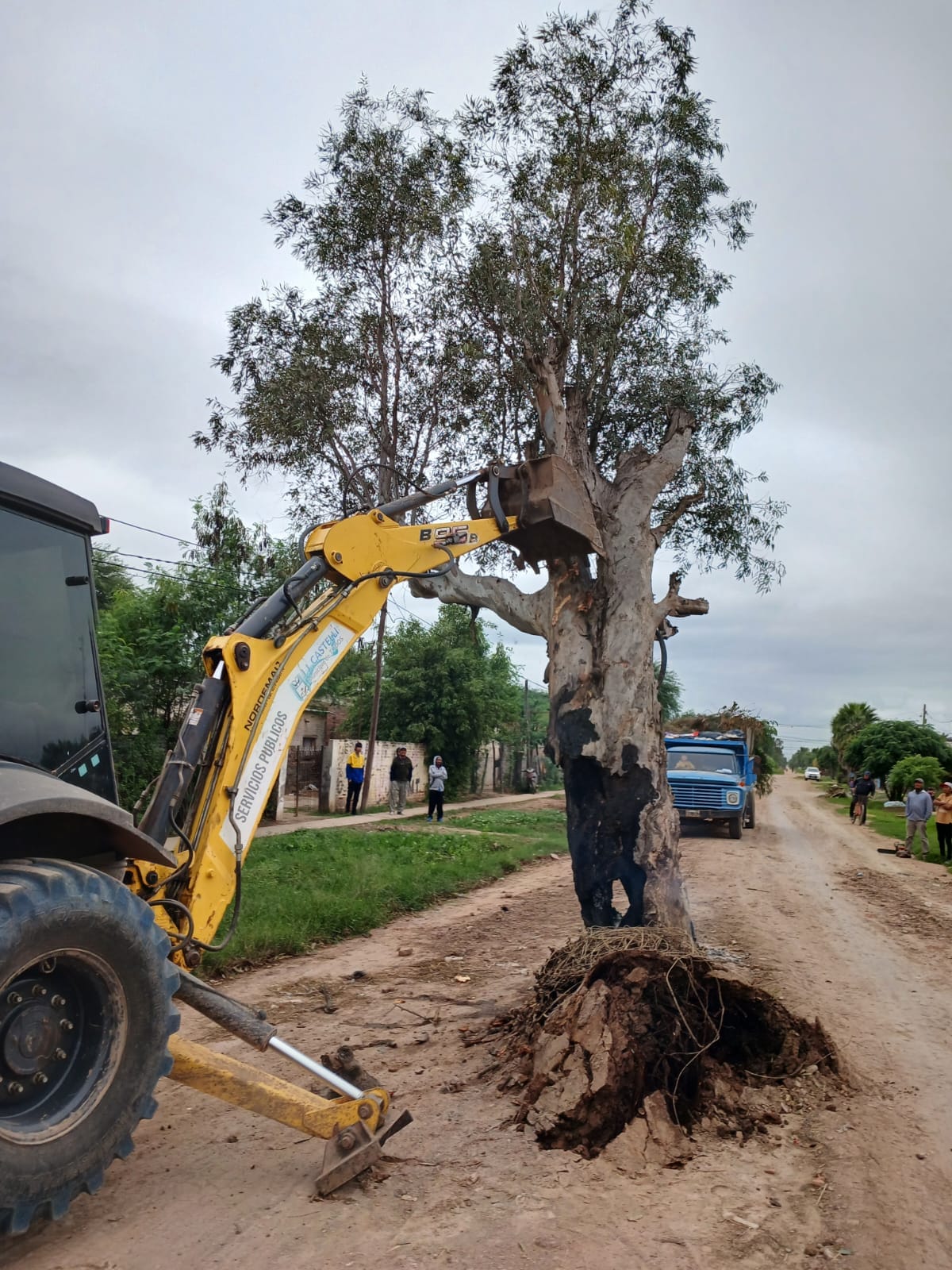 En una acción conjunta entre la Ambiente y Servicios Públicos y el Cuerpo de Bomberos, se llevó a cabo la extracción de un añejo ejemplar de eucalipto que mostraba signos de deterioro en su tronco, en calle Juan José Paso del Barrio Quinta Giménez, representando un riesgo para la seguridad de los transeúntes y los bienes materiales cercanos.