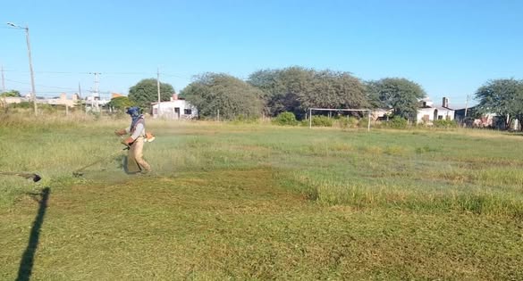 En esta oportunidad, se colaboró con la Escuela N.º 1043, donde equipos de motoguadañistas realizaron el control de malezas tanto en el predio escolar como en la cancha del barrio.