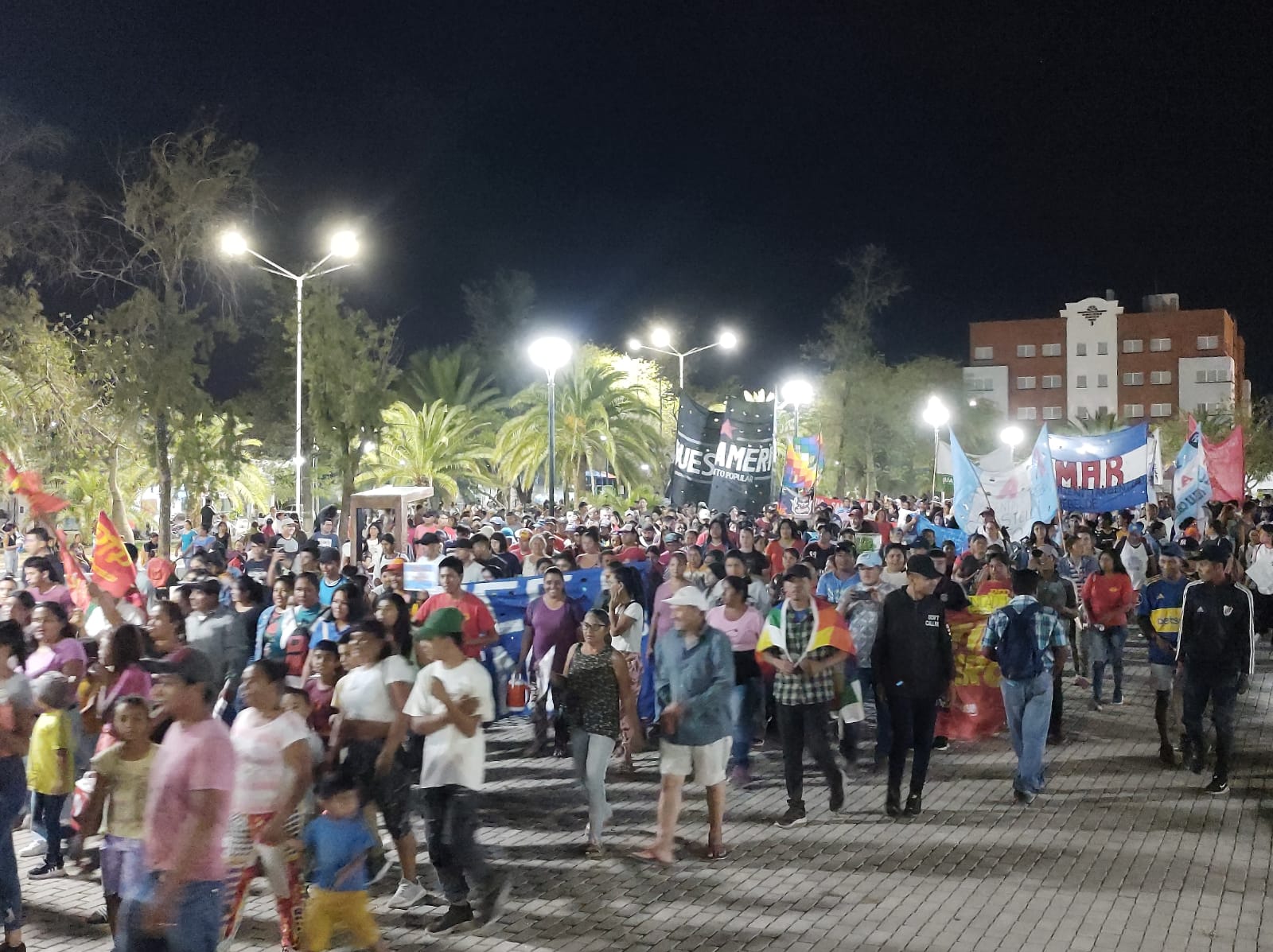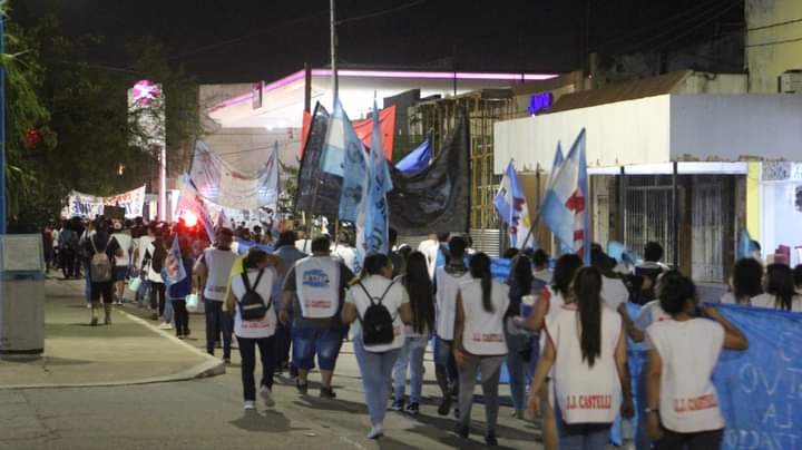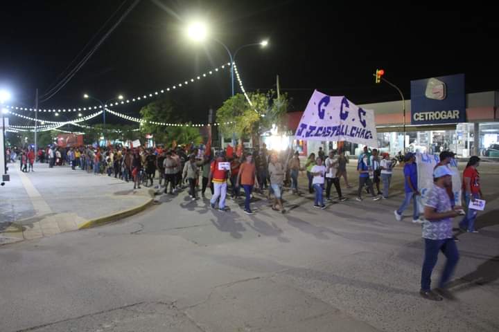 En la tarde – Noche del 24 de enero organizaciones sociales y sindicales se concentraron en la plaza SAN MARTIN de JUAN JOSE CASTELLI, luego marcharon hasta la avenida Güemes , finalizando en el lugar de partida.