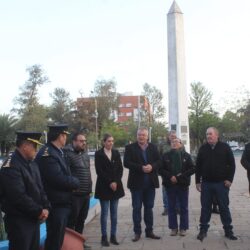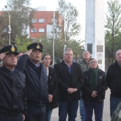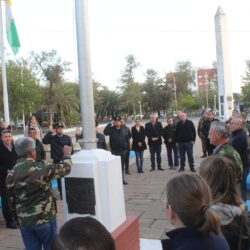El intendente Pio Sander junto a Funcionarios de su Gabinete, la Presidenta del Concejo, Ex Combatientes de Malvinas, Fuerzas de Seguridad, representantes de instituciones y vecinos realizaron el Izamiento de Pabellones Nacional, Provincial y Municipal.