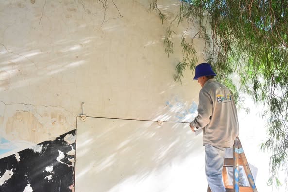 El equipo de pintores de la Municipalidad de Juan José Castelli se puso manos a la obra en la sede del club Abipones Rugby, realizando tareas de pintura y embellecimiento del espacio.