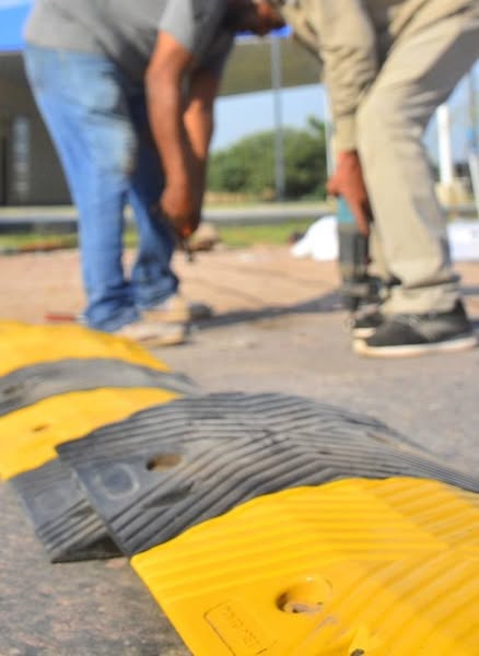 La Secretaría de Obras Públicas, por disposición del intendente Sander, ha instalado reductores de velocidad en la Diagonal Eva Perón, una de las arterias principales de acceso a la ciudad.