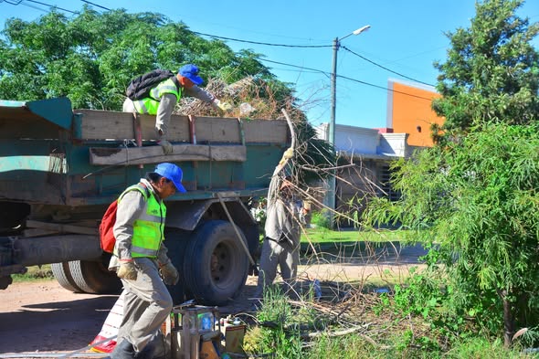Durante la jornada, se realizaron trabajos de desmalezado en las veredas, mientras que una cuadrilla de operarios se encargó del descacharrado en distintos sectores.