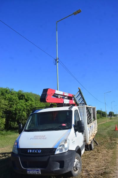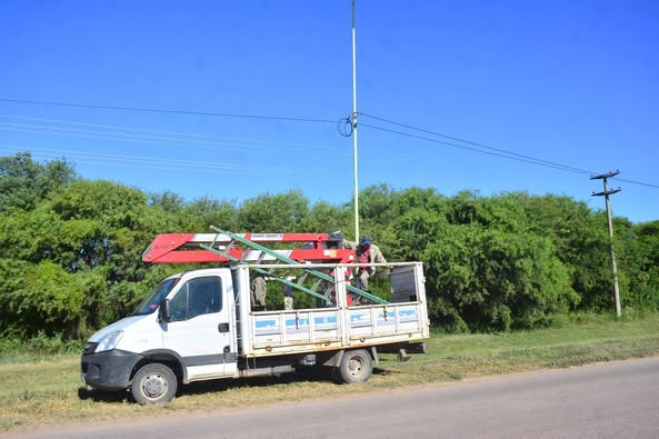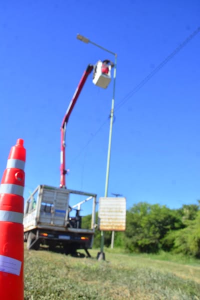 La Secretaría de Obras Públicas está realizando trabajos de reposición de cables de alumbrado público en el ingreso norte de la ciudad. Además de la reposición de cables, las tareas incluyen la elevación del cableado para evitar el robo de los mismos.