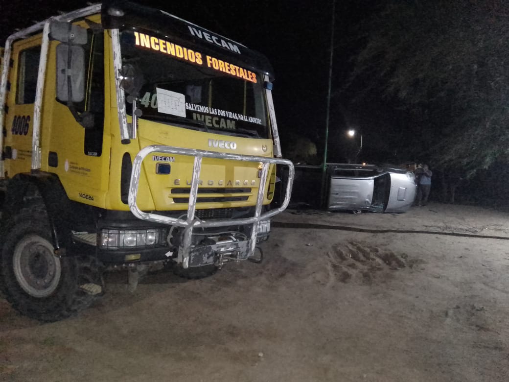 El hecho ocurrió en la madrugada del 2 de abril, aproximadamente a las 02,00 horas, la división Bomberos acude al lugar por un llamado telefónico y encuentra una camioneta TOYOTA volcada al costado de la ruta recostada por una columna del alumbrado publico.-