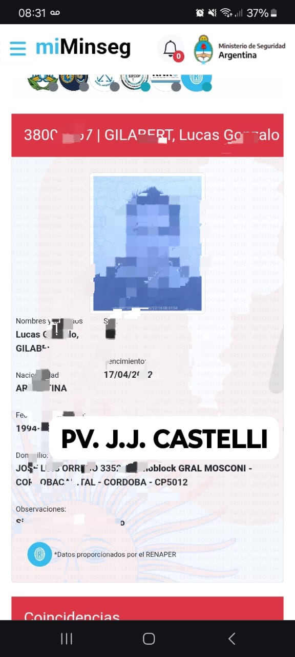 El procedimiento tuvo lugar alrededor de las 09:40 horas, cuando el personal policial interceptó el paso de Gilbert Lucas Gonzalo, de 31 años, con domicilio en la provincia de Córdoba. Al consultar sus datos personales en los sistemas informáticos de seguridad, se constató que el individuo era requerido por la Justicia de la provincia de Santa Fe.