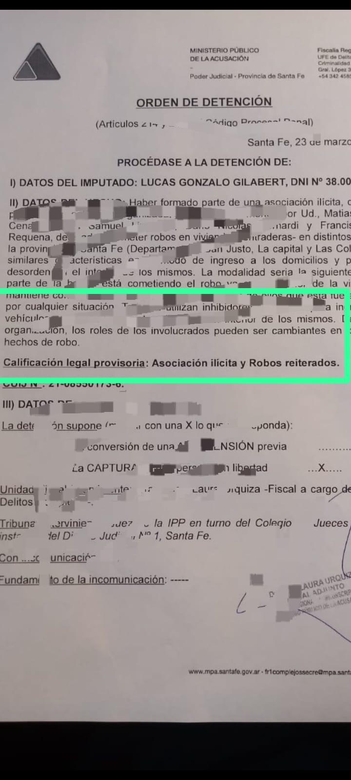 Según la información oficial, el pedido judicial se encuentra vinculado a una causa caratulada como “Asociación ilícita y robos reiterados”, tramitada bajo el Legajo Nº 209/20, con intervención de la Fiscalía Adjunta de Delitos Complejos Nº 1, a cargo de la fiscal Laura Urquiza. La medida había sido dispuesta en el año 2021 y permanecía vigente.