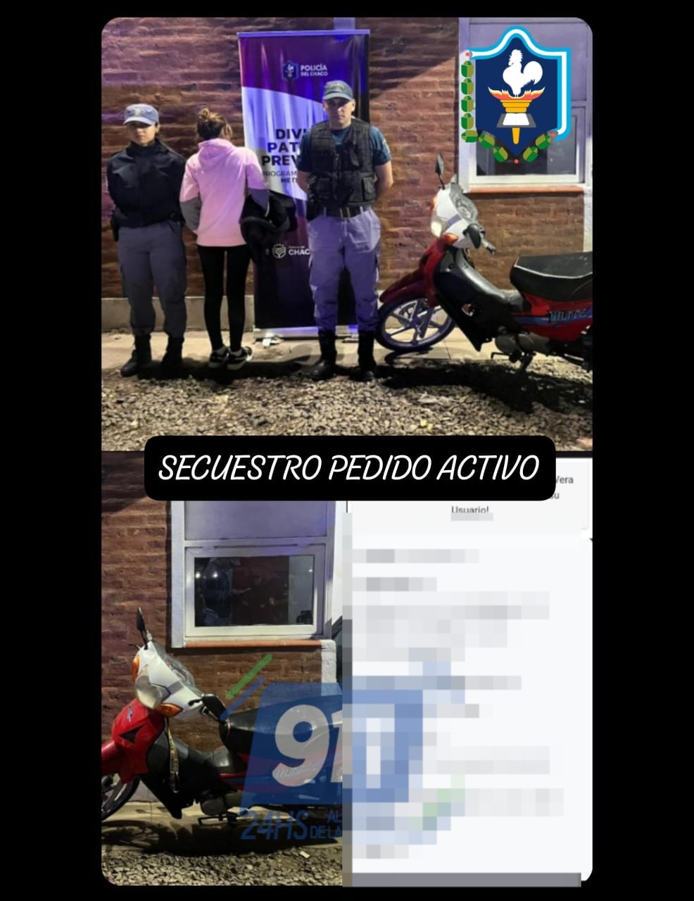 Tras consultar la numeración en el sistema del Padrón Unificado de Motovehículos (PMU), se constató que el rodado registraba pedido activo de secuestro en una causa por robo, a solicitud de la Comisaría Octava Metropolitana. Ante la situación, se procedió al secuestro formal de la moto y a la conducción de la mujer hacia la dependencia policial, previa intervención de Medicina Legal.