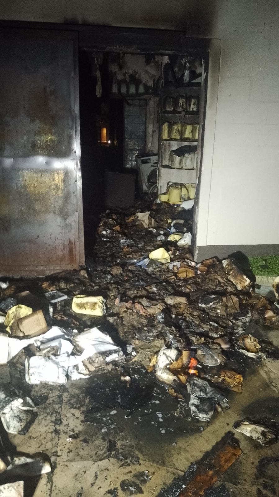 Minutos después, a las 22:15, la División Patrulla Preventiva intervino ante un incendio en la residencia “La Fabiana”. Al llegar, los efectivos constataron la presencia de fuego y detonaciones en uno de los sectores laterales del edificio.