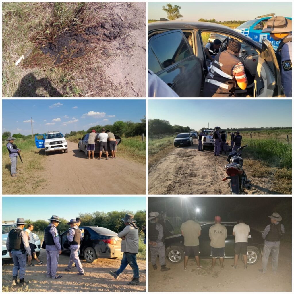 Se procedió al secuestro del automóvil, proyectil y prendas de vestir. Asimismo se procedió Aprehensión de los (03) ocupante: A., A. Y A.. En autos “Sup. Abigeato”, el Envoltorio se remite División Operaciones Drogas Interior, a  fines de realizar prueba de campo. Los aprehendidos fueron alojados en la Comisaria de Quitilipi (A. P. R.) Y Comisaria el Tacuruzal (Á. y O.) Se recepcióno Denuncia al Sr. E., W., quien manifestó que el animal faenado seria categoría ternero.