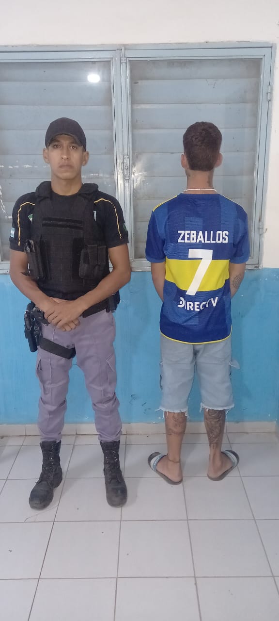 La policía recibe un llamado telefónico anónimo, dando cuenta masculino vistiendo gorra c/ rosado flúor, y camiseta Club boca, en Av. 10 y 9, aparentemente estaría vendiendo estupefacientes.