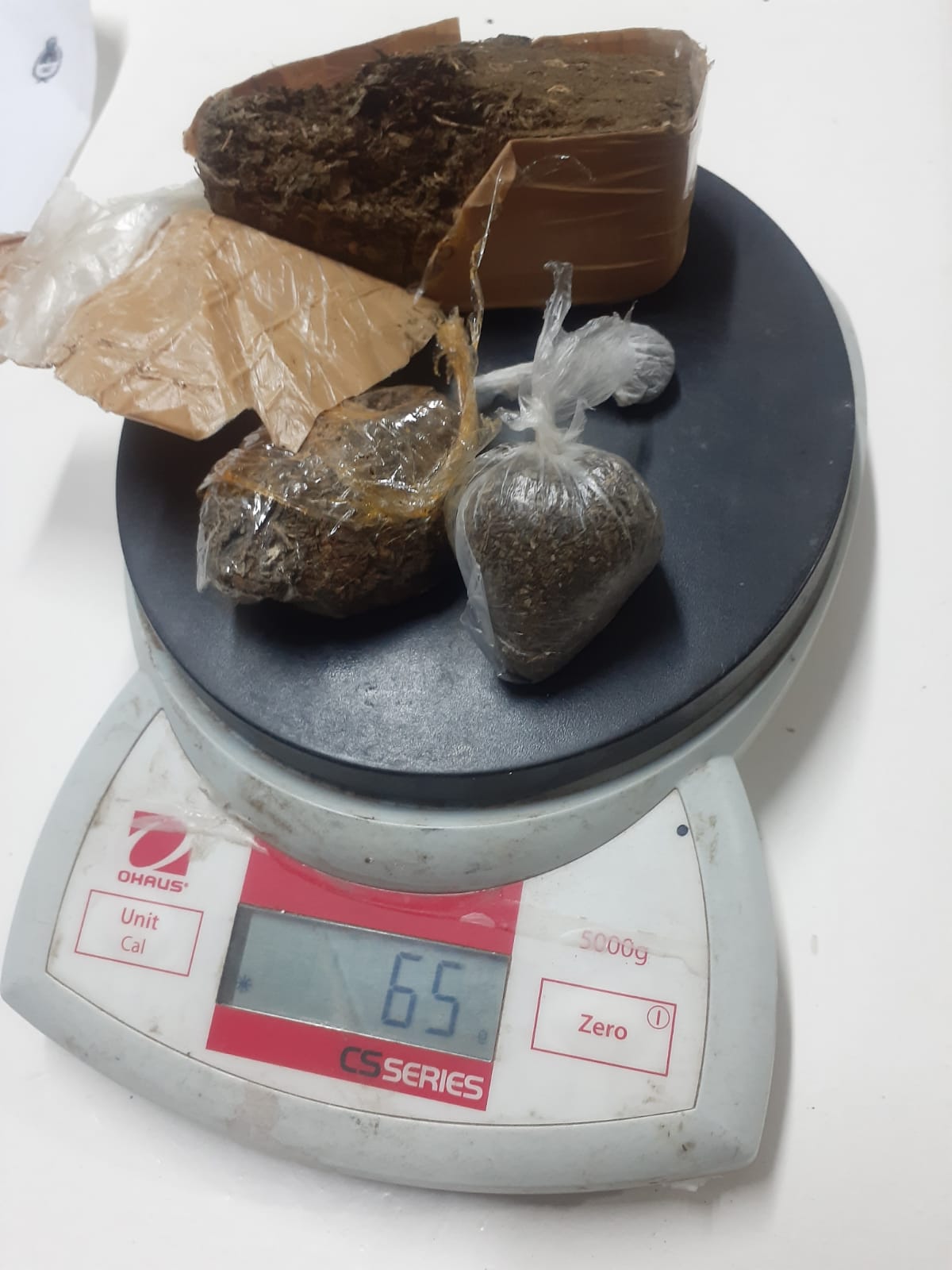 Se solicitó intervención personal Drogas Interior Saenz Peña, quienes realizaron prueba campo, arrojando pesaje 65 gr, Narco-test positivo p/ marihuana. Se confeccionó acta constatación y secuestro.