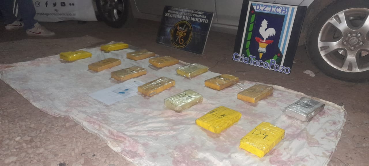 Personal de División Operaciones Drogas Charata- Sección Río Muerto procedió abocarse realización prueba narco test y pesaje; arrojando como resultado POSITIVO para COCAINA, peso 14.770 kgs. distribuidos en 14 panes rectangulares.