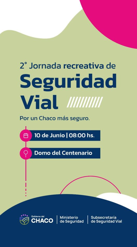 La Subsecretaría de Seguridad Vial, perteneciente al Ministerio de Seguridad del Gobierno del Chaco, invita a toda la comunidad a participar de la 2° Jornada Recreativa de Seguridad y Educación Vial, que se realizará el próximo 10 de junio a partir de las 08:00 horas en el Domo del Centenario, en la ciudad de Resistencia.