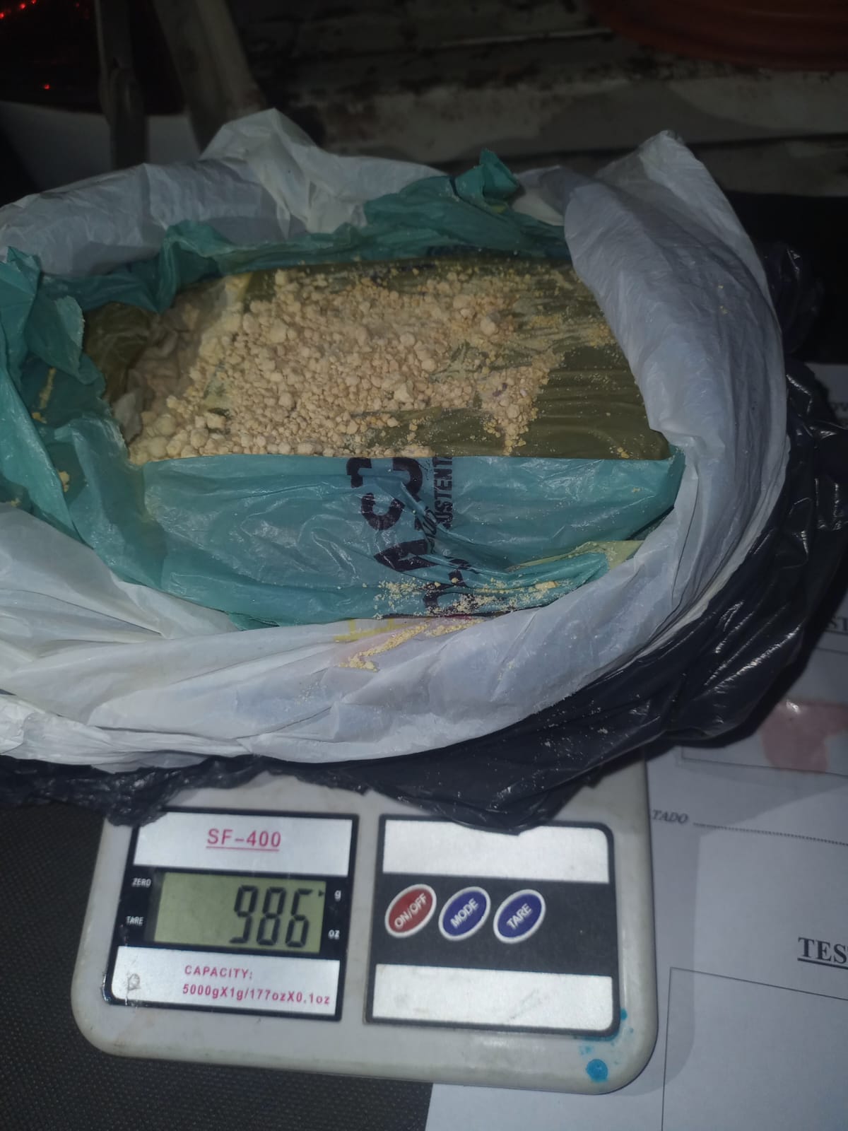 🔴 (01) Objeto de forma rectangular con un peso de (-986-) gramos positivo a cocaína