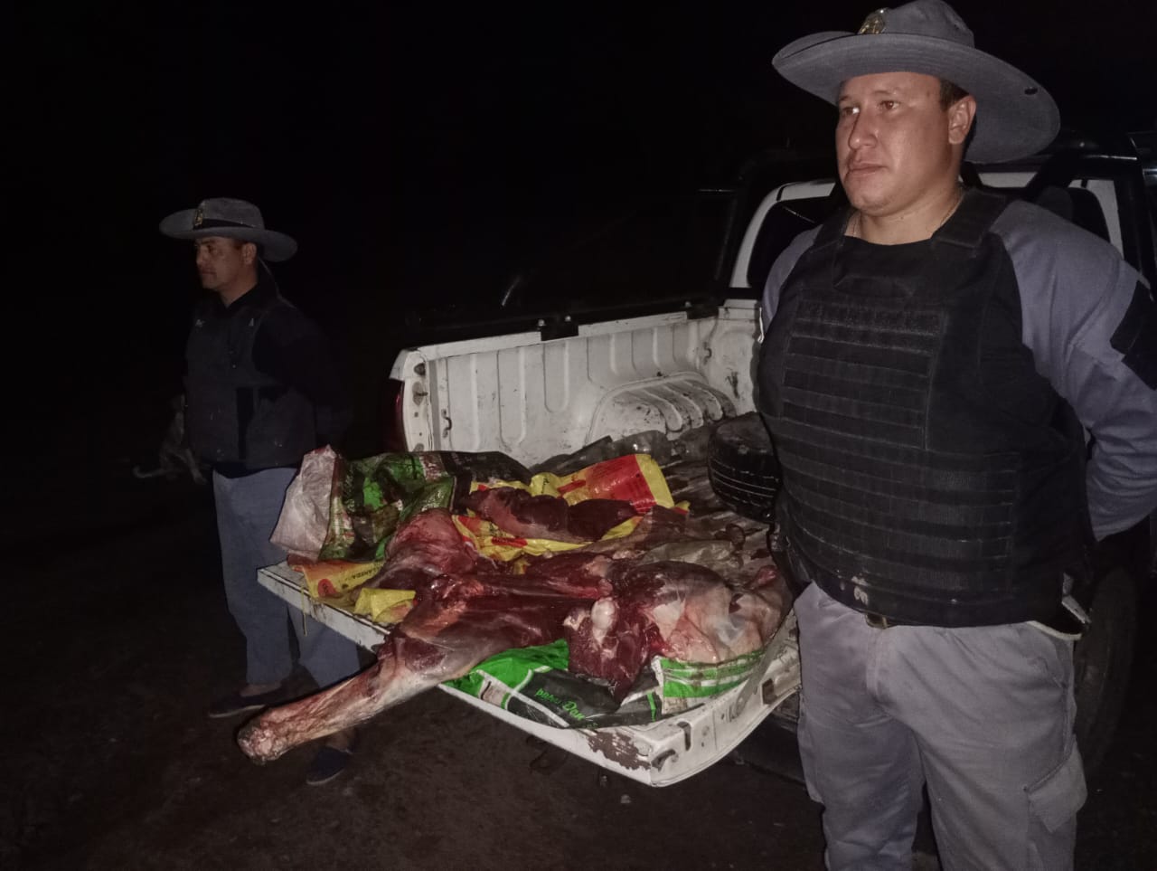 El hecho ocurrió en Colonia Pampa Napenay, el propietario denuncio que le sustrajeron dos equino, la policía recorre el lugar encuentra uno carneado en bolsas y el otro tambeado correría el mismo destino, Sr. ALBINO AGUILAR denuncia como los autores de la faena de su animal serian: JUAN PINATTI; (a) QUICHI PÍNATTI y (a) FORASTERO.
