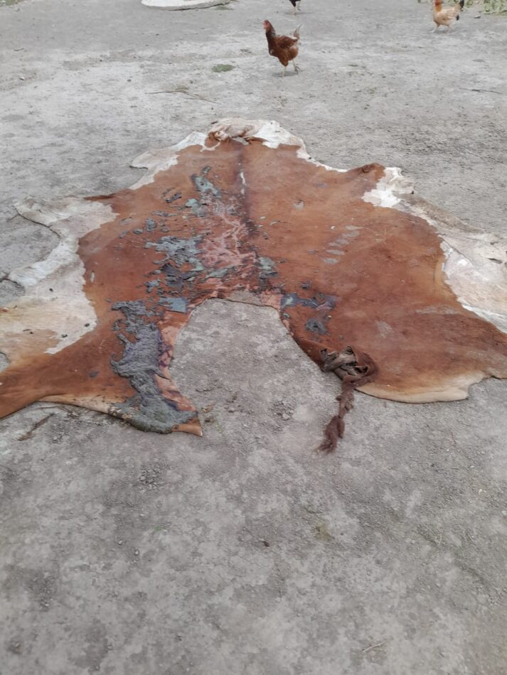 En cercanías de un campo de la Planta Urbana de esa localidad hallaron animales vacunos que interrumpían los caminos vecinales, los arriaron hasta la estancia de su propietario. Al llegar dentro del predio encontraron una cabeza, cuero y carne de un animal vacuno faenado no apto para el consumo humano.