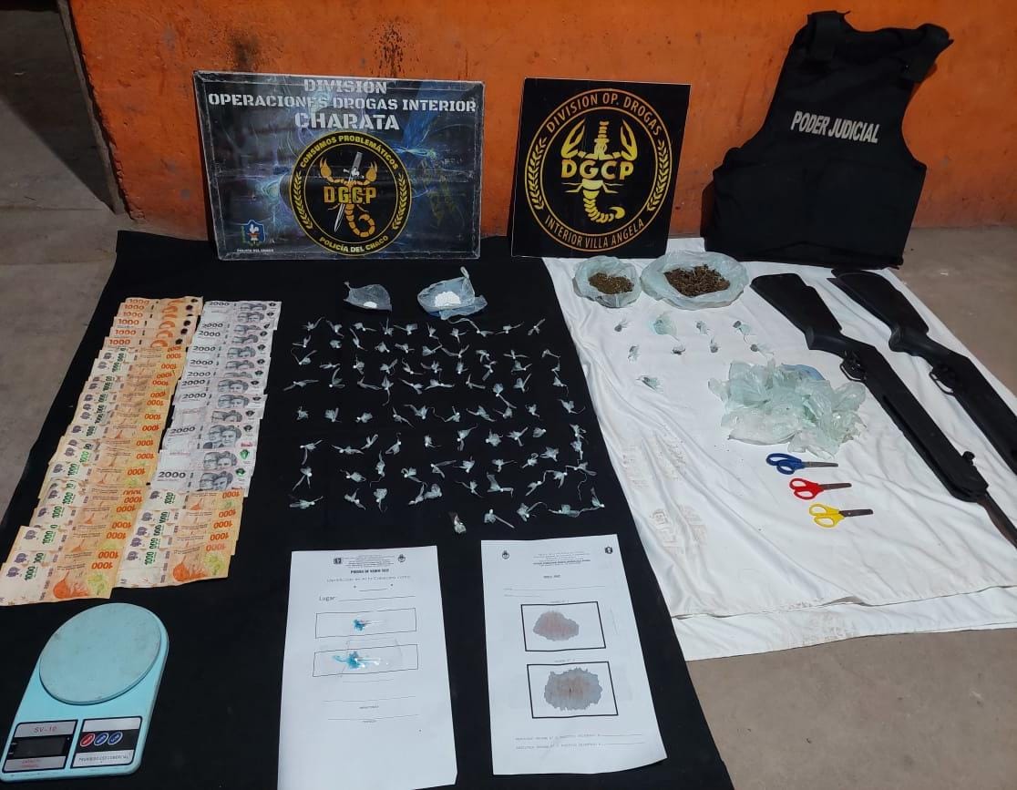 Como resultado, en el primer domicilio se procedió a la aprehensión de un hombre de 28 años, logrando el secuestro de cocaína y marihuana, dinero en efectivo por $59.000, una balanza digital y dos rifles de aire comprimido. El total de estupefacientes incautados asciende a 80,84 gramos de marihuana y 28,5 gramos de cocaína.