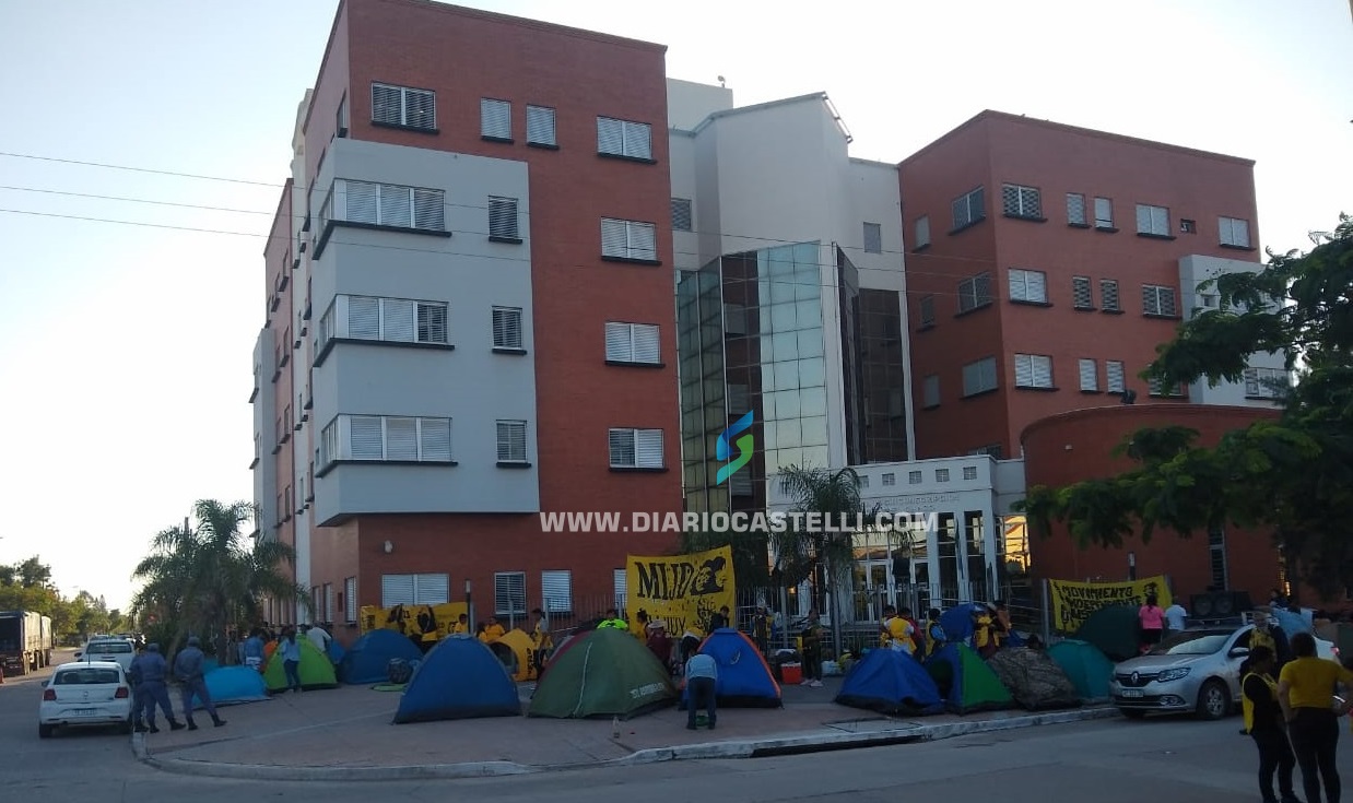 Desde las primeras horas de este miércoles, manifestantes del movimiento social MIJD de distintos puntos del país arribaron a Castelli para iniciar un acampe en apoyo al dirigente nacional Raúl Castells que será sometido a juicio en los tribunales de esta ciudad, por una causa judicial iniciada en el año 2018 tras los incidentes en las oficinas de Secheep y de Desarrollo Social de Tres Isletas.