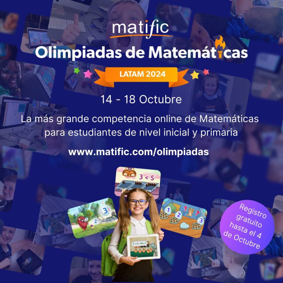 Buenos Aires, julio de 2024.- Matific, la plataforma de inteligencia artificial educativa para enseñar y aprender matemáticas que está dentro de las top EdTech de matemáticas en el mundo (según la revista Time), anuncia la apertura de inscripciones para las Olimpiadas de Matemáticas Matific Latinoamérica 2024 del 15 de agosto al 4 de octubre de forma gratuita. La competencia, que tendrá lugar del 14 al 18 de octubre de este año, ofrece una oportunidad única para que los participantes mejoren sus habilidades matemáticas de una manera divertida y competitiva.