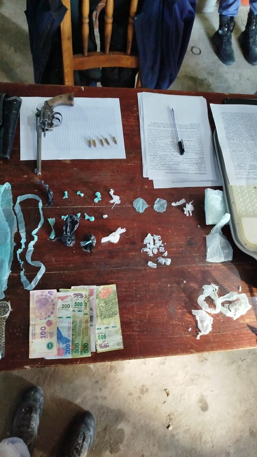 Durante el operativo aprehendieron a una mujer de 43 años (ex suegra de una de las víctimas del hecho) y secuestraron un revólver calibre 22 con cinco cartuchos. Al mismo tiempo, durante el operativo hallaron 28 gramos de cocaína, dos objetos de dudosa procedencia: una bomba de agua y una luminaria pública.