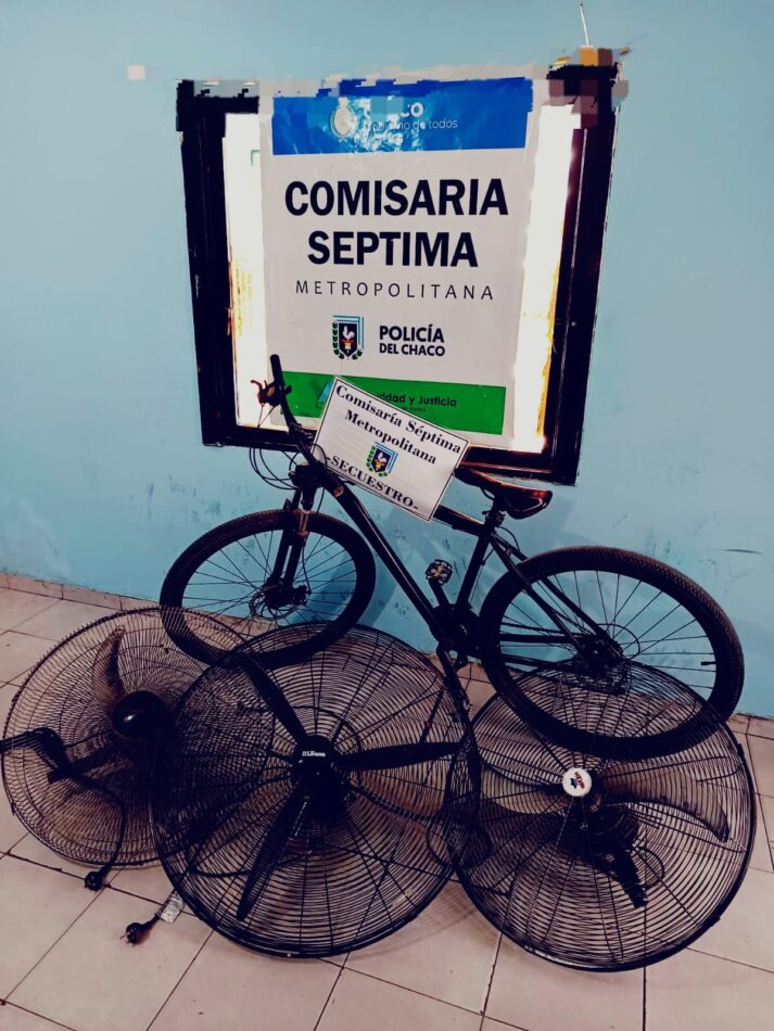 Seguidamente realizaron recorridas de búsqueda en las inmediaciones logrando a pocos metros visualizar a un hombre con similares características brindadas y con los objetos sustraídos en su poder, por lo que se procedió a la demora del individuo y el secuestro de los ventiladores y del rodado en el que circulaba.