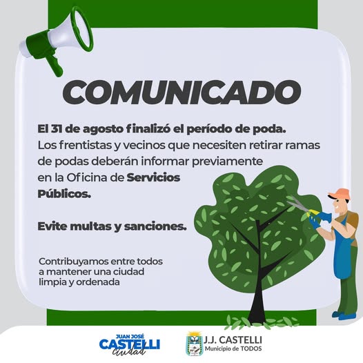 La Municipalidad de Juan José Castelli informa que desde el 31 de agosto ha finalizado el período de poda.