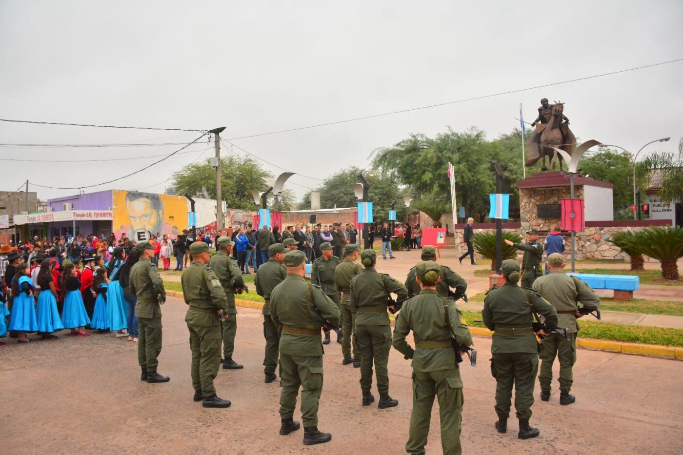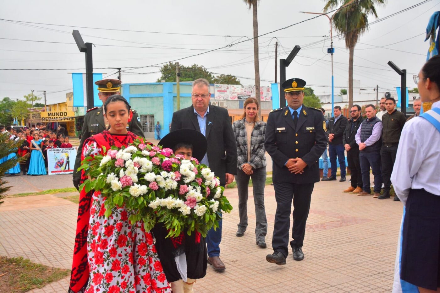 Desde la Secretaría de Cultura y Turismo, se convocó a escuelas de danzas, el escuadrón de Gendarmería y la policía para participar de esta solemne ceremonia. El acto fue encabezado por el intendente Pío Oscar Sander, acompañado de la presidenta del Concejo Deliberante, Soledad Rach, el secretario de Gobierno, Ismael Pablo Barnes, concejales y miembrosndel gabinete municipal, autoridades policiales, y en representación de Gendarmería Nacional del Escuadrón Número 1, el alférez Miguel Mielnichuk, junto al jefe del escuadrón, Fernando Samudio, primer alférez.