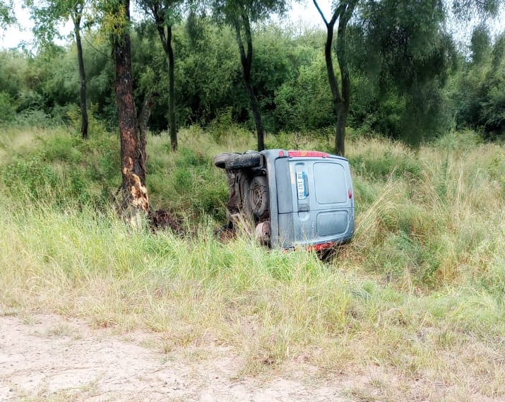 A eso de las 14:40, el personal de la comisaría local, llego al lugar y encontró en la banquina una camioneta Renault Kangoo, color gris, la cual estaba volcada.