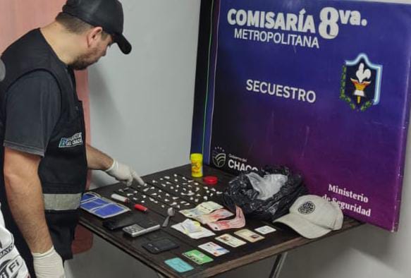 En la calle Alicia Le Saige al 1050 aproximadamente, demoraron a cuatro personas que intercambiaban lo que parecía ser estupefacientes. Los identificaron y constataron que entre sus prendas tenían envoltorios con cocaína y otros elementos vinculados a la venta. Procedieron al secuestro de 8 gramos de cocaína, la suma de $20.000 pesos y 5.000 guaraníes, recortes de polietileno, una balanza y un celular.