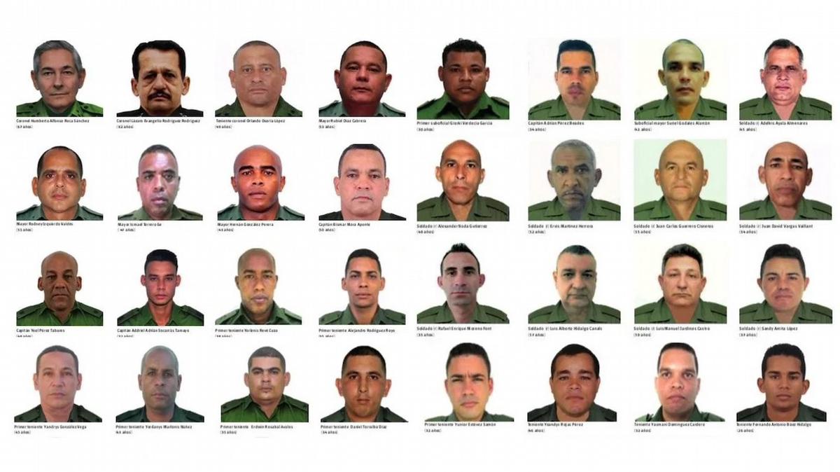 Según el listado oficial, 20 de los fallecidos pertenecían al Ministerio del Interior, entre ellos dos coroneles, un teniente coronel y varios oficiales superiores. Los otros 12 integraban las Fuerzas Armadas Revolucionarias, con rangos que incluyen capitanes, suboficiales y soldados. Las edades de los fallecidos oscilan entre los 26 y los 67 años.