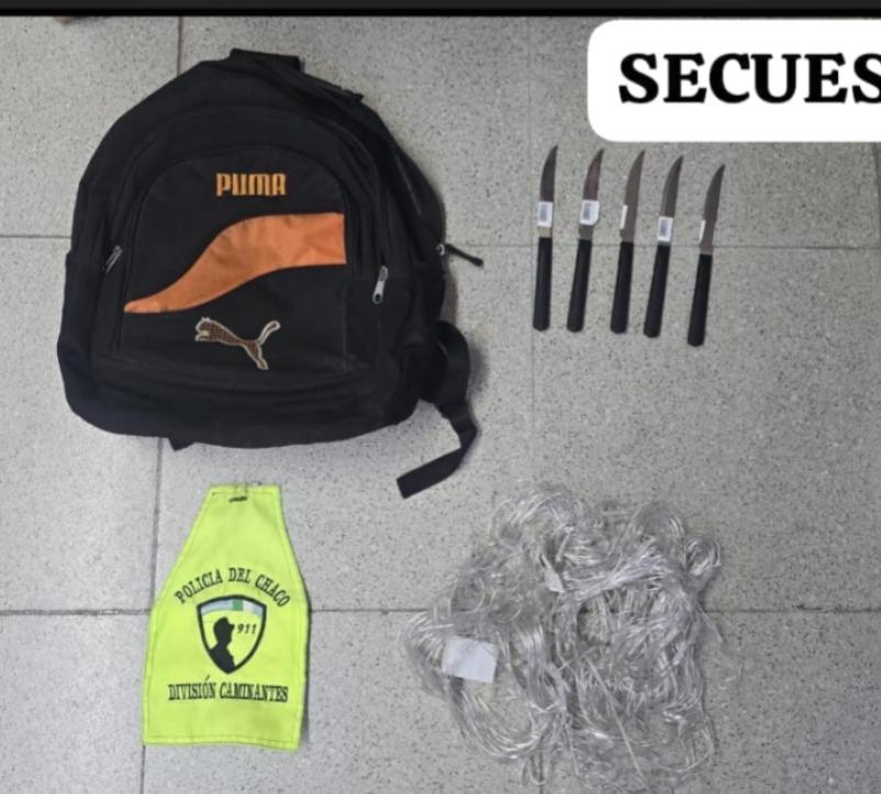 El procedimiento se realizó alrededor de las 20:20, cuando los efectivos intervinieron en el local comercial y constataron la sustracción de una mochila, varios cuchillos tipo serruchó y un cable de luces navideñas, elementos que fueron formalmente secuestrados en el lugar ante testigos.