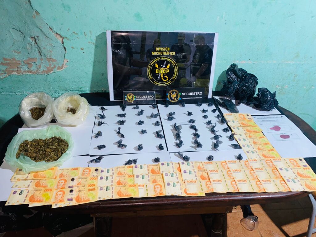 Durante el registro del domicilio, ubicado sobre calle Carlos Hardy al 4900 aproximadamente, los agentes hallaron 52 envoltorios de polietileno negro y una bolsa tipo ziploc con sustancia vegetal verde amarronada, que tras las pruebas de campo arrojaron resultado positivo a marihuana, con un peso total de 250 gramos. Además, se incautaron recortes de polietileno y la suma de 53.000 pesos en efectivo.