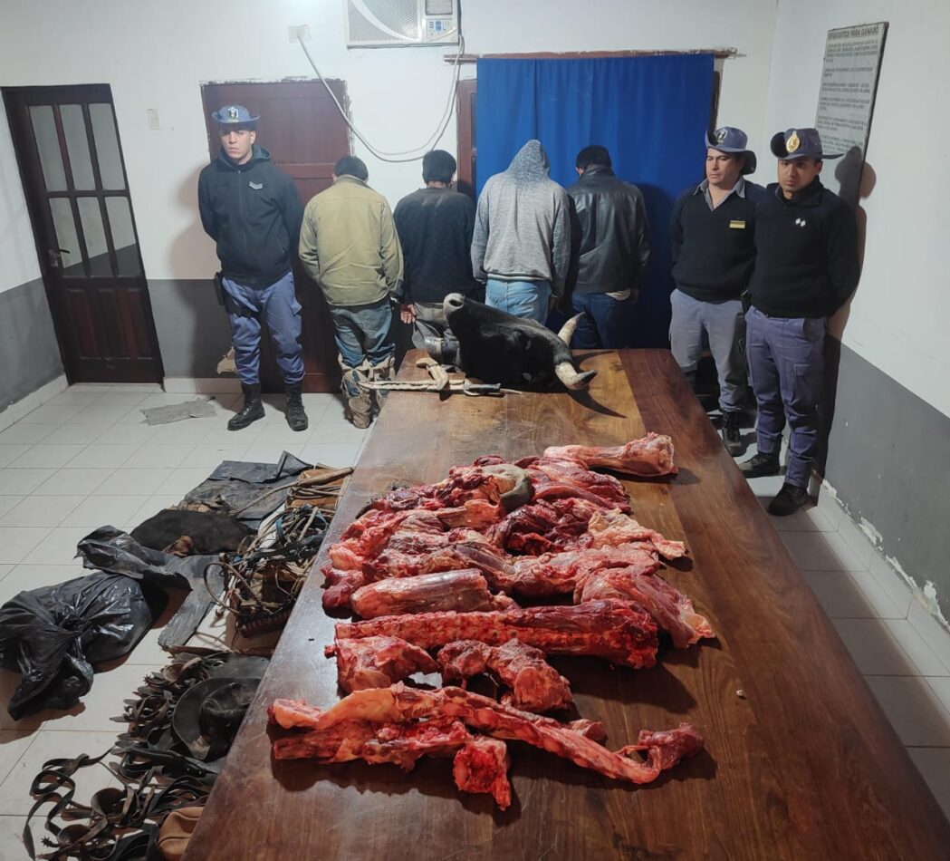 Al intentar huir al notar la presencia policial, los sospechosos fueron detenidos e identificados como E.S. y A.S. . El bulto que arrojaron al suelo resultó contener carne de vacuno, dos cueros frescos y una cabeza de animal vacuno, todos presuntamente robados. En el transcurso de la operación, se sumaron otros dos individuos a la escena, A y L.S. , quienes también fueron detenidos. L.S. admitió que había capturado y faenado los animales robados, los cuales serían distribuidos en la localidad de Misión Nueva Pompeya.