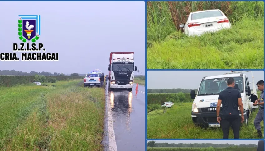 DESPISTE EN RUTA NACIONAL N°16: EL CONDUCTOR DEL AUTO SE DESVIÓ DEBIDO A LA INCLEMENCIA DEL TIEMPO