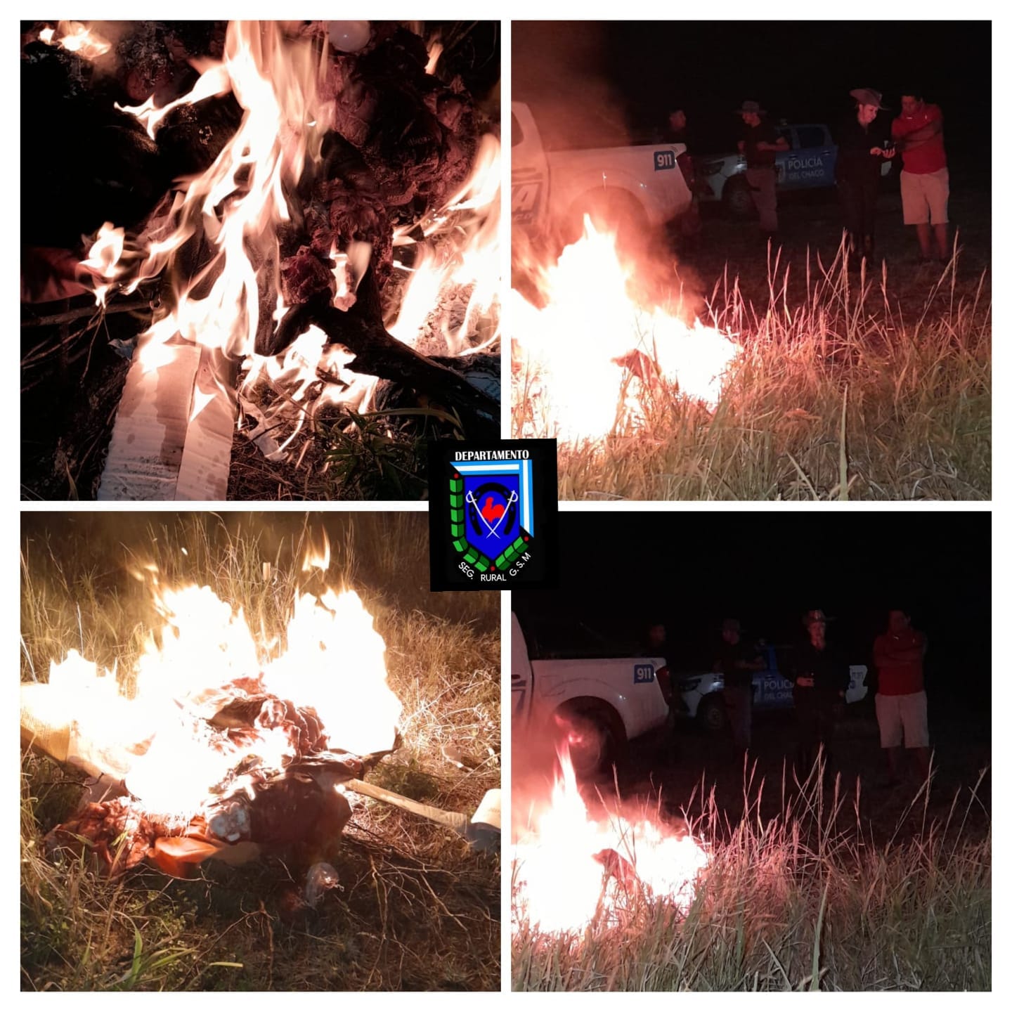 Posteriormente, se hizo presente médica veterinaria quien examino el producto cárnico, diagnosticando no apto para el consumo humano. De esta manera, tras consultar con la fiscalía interviniente, procedieron a la incineración de la carne faenada y las tres personas fueron notificadas de su aprehensión en una causa por “Supuesto Abigeato”.