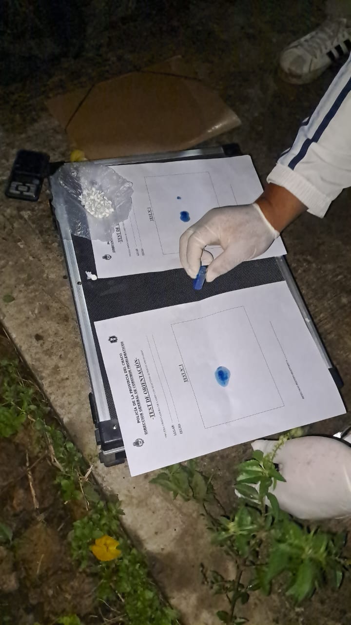 Mediante la intervención del Departamento de Consumos Problemáticos, descubrieron que se trataba de cocaína, la prueba arrojo resultado positivo, con el peso total de 4.6 gramos.