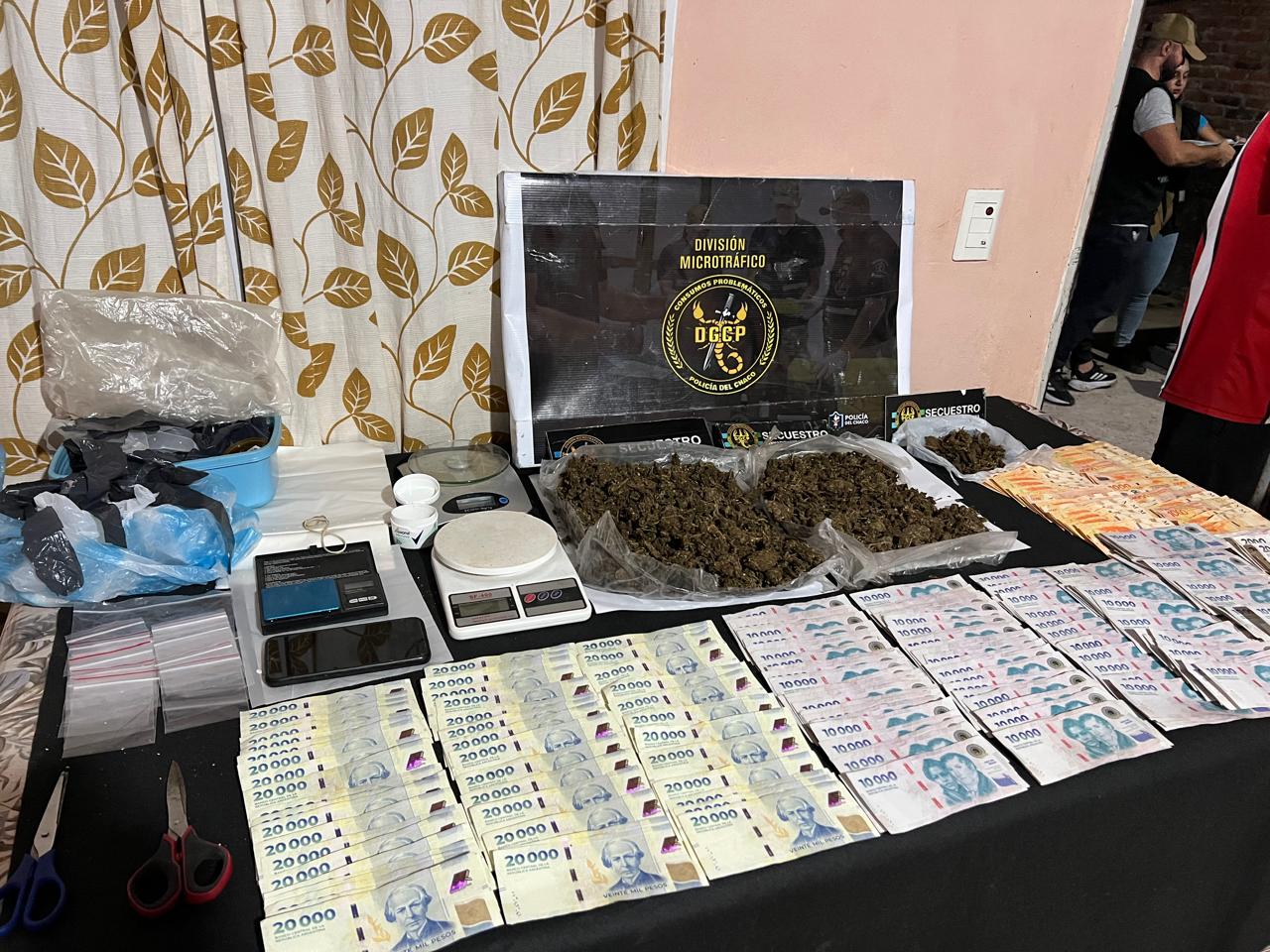 Un importante operativo en el barrio Asentamiento Ávalos, secuestraron marihuana fraccionada, una elevada suma de dinero y diversos elementos utilizados para el presunto narcomenudeo.