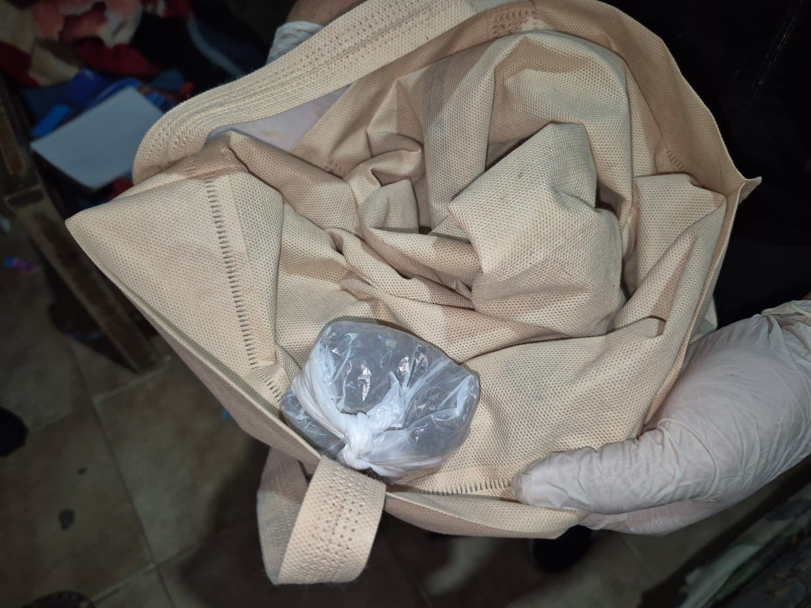 Durante el registro, se incautaron dos bolsas tipo ziploc con sustancia vegetal similar a cogollos de marihuana, que tras la prueba de campo arrojaron un peso de 815 gramos. Además, se encontró un envoltorio estilo bochón con otros 27 gramos, totalizando 842 gramos de marihuana.