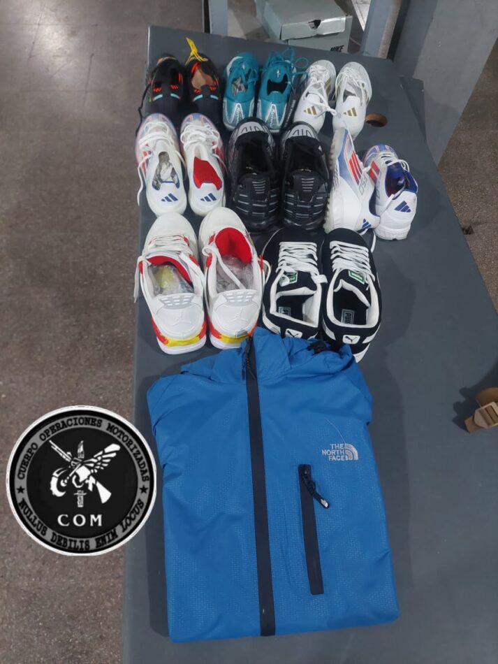 Durante el procedimiento, lograron incautar cinco pares de botines de fútbol, tres pares de zapatillas y una campera en poder de los jóvenes. Posteriormente, se dio intervención a la Comisaría Primera Sáenz Peña para continuar con los trámites legales pertinentes.