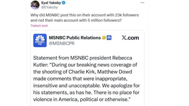 ECHARON A MATTHEW DOWD DE LA CADENA MSNBC POR SUS DICHOS SOBRE CHARLIE KIRK: «NO SE PUEDE TENER…»