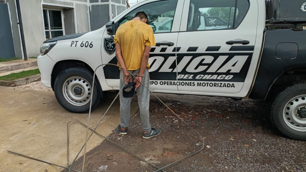 El hecho se originó alrededor de las 16, cuando una vecina de 79 años alertó a los agentes sobre la presencia de dos sujetos en la zona de avenida Sarmiento al 500. En el relato de la mujer, uno de los individuos oficiaba de «campana» mientras el otro saltaba el muro de una obra para sustraer barras de hierro, dándose luego a la fuga por la calle Saavedra.