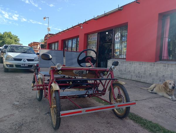 En la tarde de este día 6 de Marzo 2024, encontramos estacionado en » Corralón Las Malvinas » al minititi propulsado a batería. Sorprendidos por este medio de movilidad, aguardamos a su conductor y al cabo de unos minutos salió del citado comercio el señor DUJE KOLUDROBICH, vecino de esta ciudad, a quien interrogamos al respecto y nos contó que el vehículo tiene todas las características de un auto común y que al mismo lo utiliza para hacer mandados.