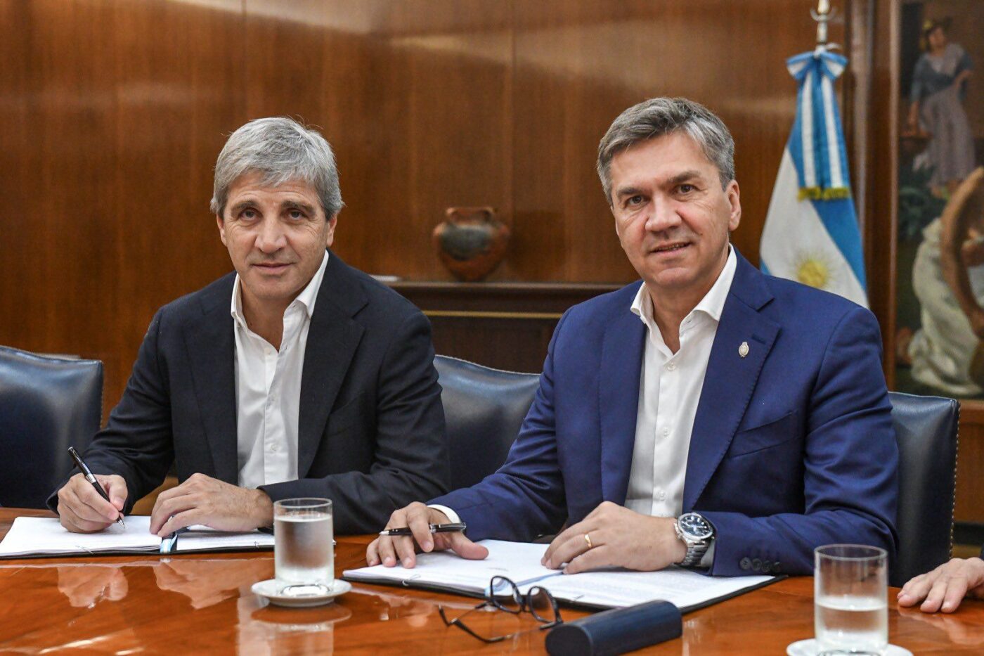 junto al Ministro de Economía de la nación @LuisCaputoAR , el Secretario de Hacienda Carlos Guberman, el viceministro de interior @catalanlisandro , donde firmaron la carta de intención que “nos permite simplificar las deudas que existen entre la Nación y la Provincia del Chaco. Esto significa la eliminación de las deudas de gestiones anteriores con el estado Nacional”- indicó el mandatario chaqueño.