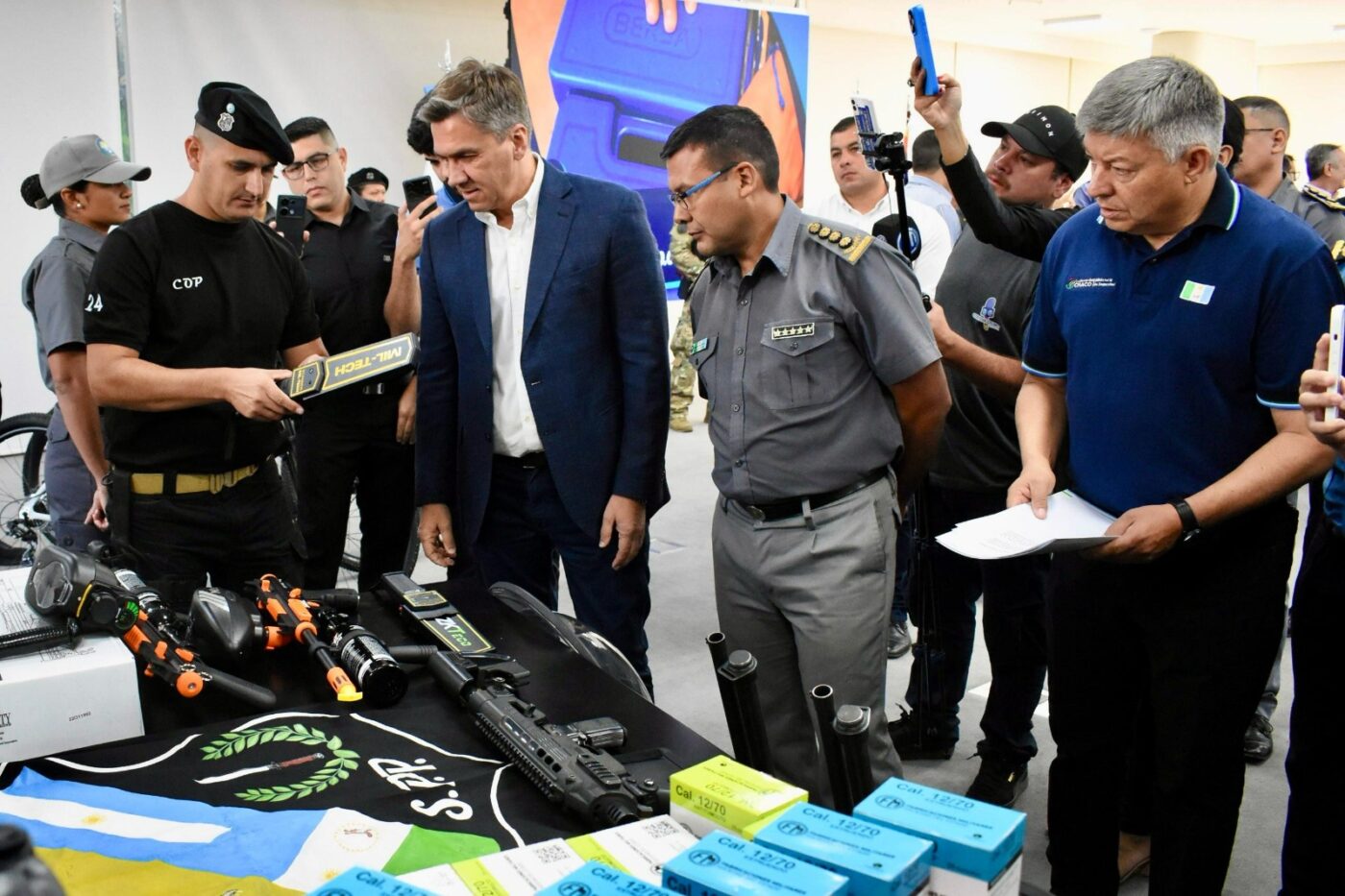 EL GOBERNADOR ZDERO ENTREGÓ EQUIPAMIENTO, PRESENTÓ LA UNIDAD CICLISTA DE ACCIÓN RÁPIDA Y LAS ARMAS NO LETALES