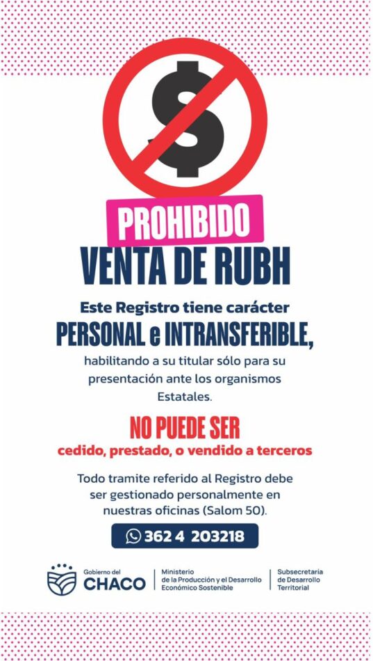 EL GOBIERNO DEL CHACO ADVIERTE: ESTÁ PROHIBIDA LA VENTA DEL RUBH Y LAS ACTAS DE PRE ADJUDICACIÓN