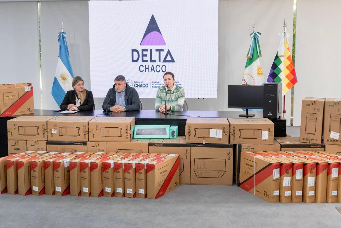 Este lunes, en el Salón Obligado, el ministro de Gobierno, Jorge Gómez, encabezó el acto de entrega de equipos informáticos destinados a la Dirección de Catastro de la Provincia del Chaco. La acción se enmarca en el Proyecto DELTA, una estrategia de modernización que impulsa el uso de la plataforma GeoSitm, con el objetivo de digitalizar los procesos catastrales y facilitar el acceso a la información desde cualquier punto del territorio. Estuvo acompañado por la secretaria General de la Gobernación, Carolina Meiriño y la subsecretaria de Asuntos Registrales, Mercedes Marinich.
