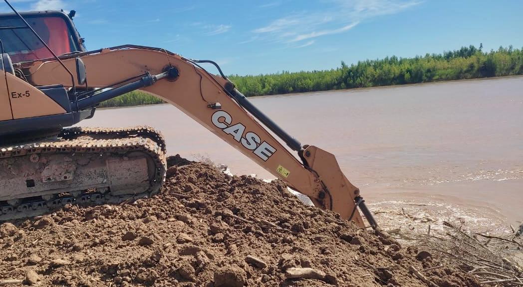 A través de las Delegaciones Zonales, la DVP lleva adelante tareas de movimiento de suelo para la construcción de un espigón sobre el cauce del Río Bermejo, el cual servirá para forzar el escurrimiento hacia el canal que se construyó oportunamente en coordinación con Vialidad Nacional.