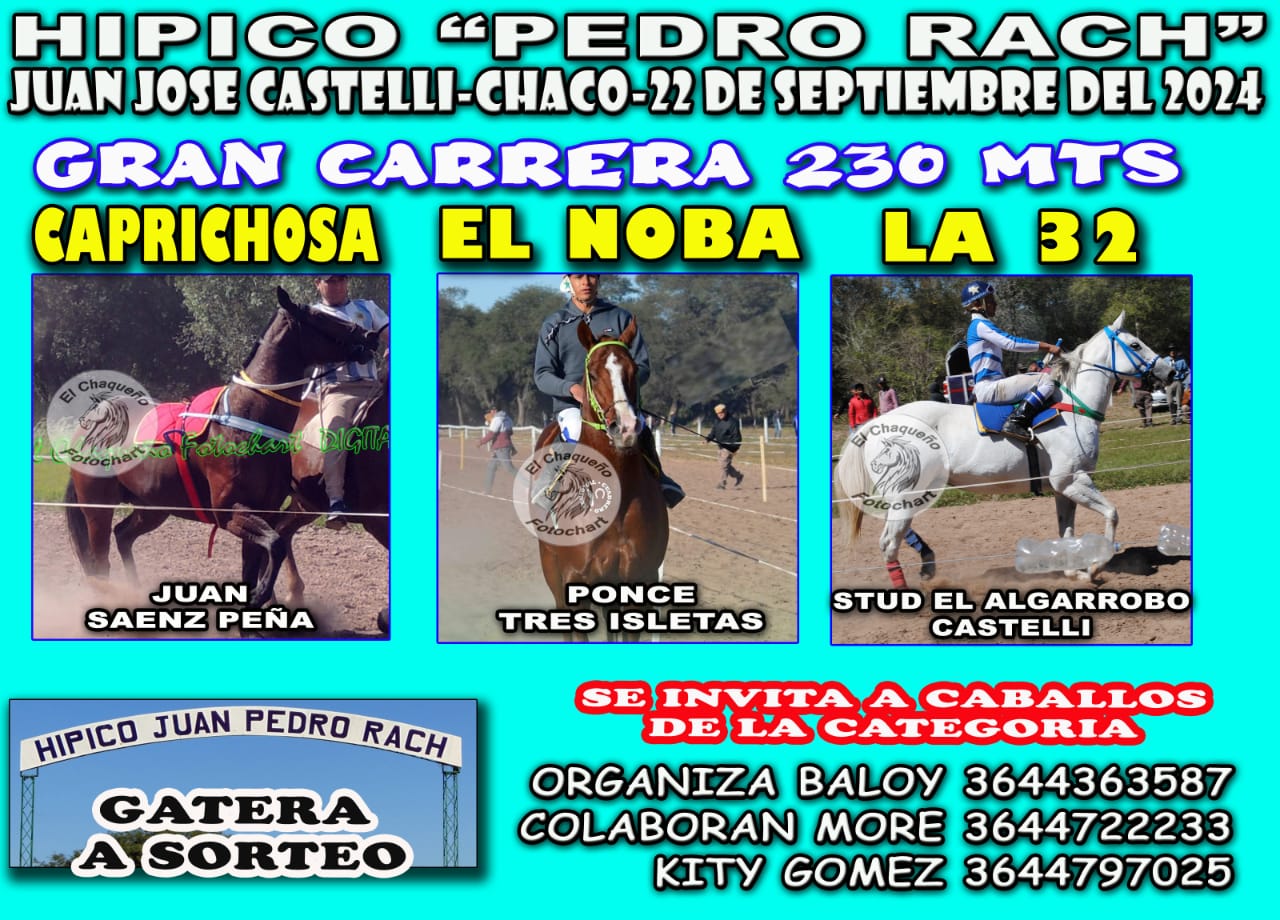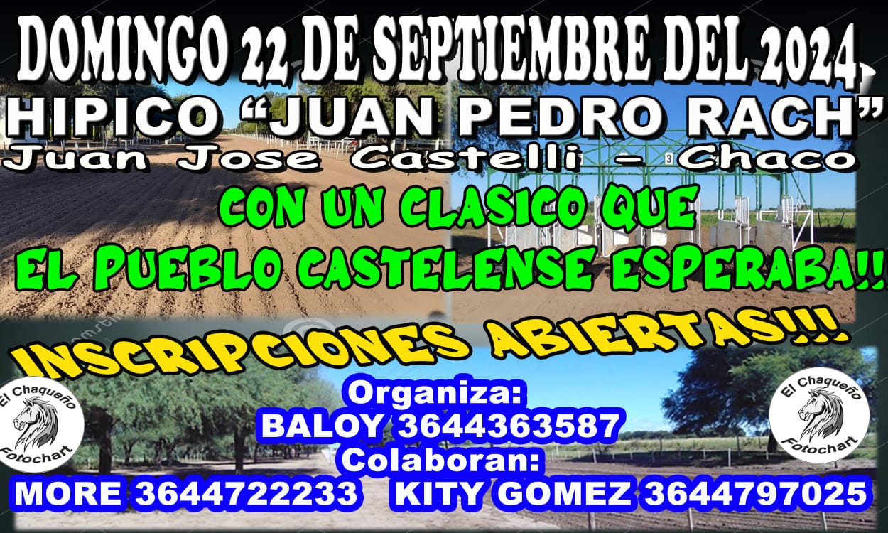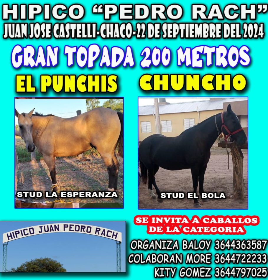 El próximo domingo 22 de septiembre, el Hipico Juan Pedro Rach será el epicentro de la emoción hípica en una jornada que promete ser memorable. Bajo la organización de Baloy Holgado, con la colaboración de Kiti Gómez, este evento contará con dos carreras cuadreras de primer nivel que no te querrás perder.
