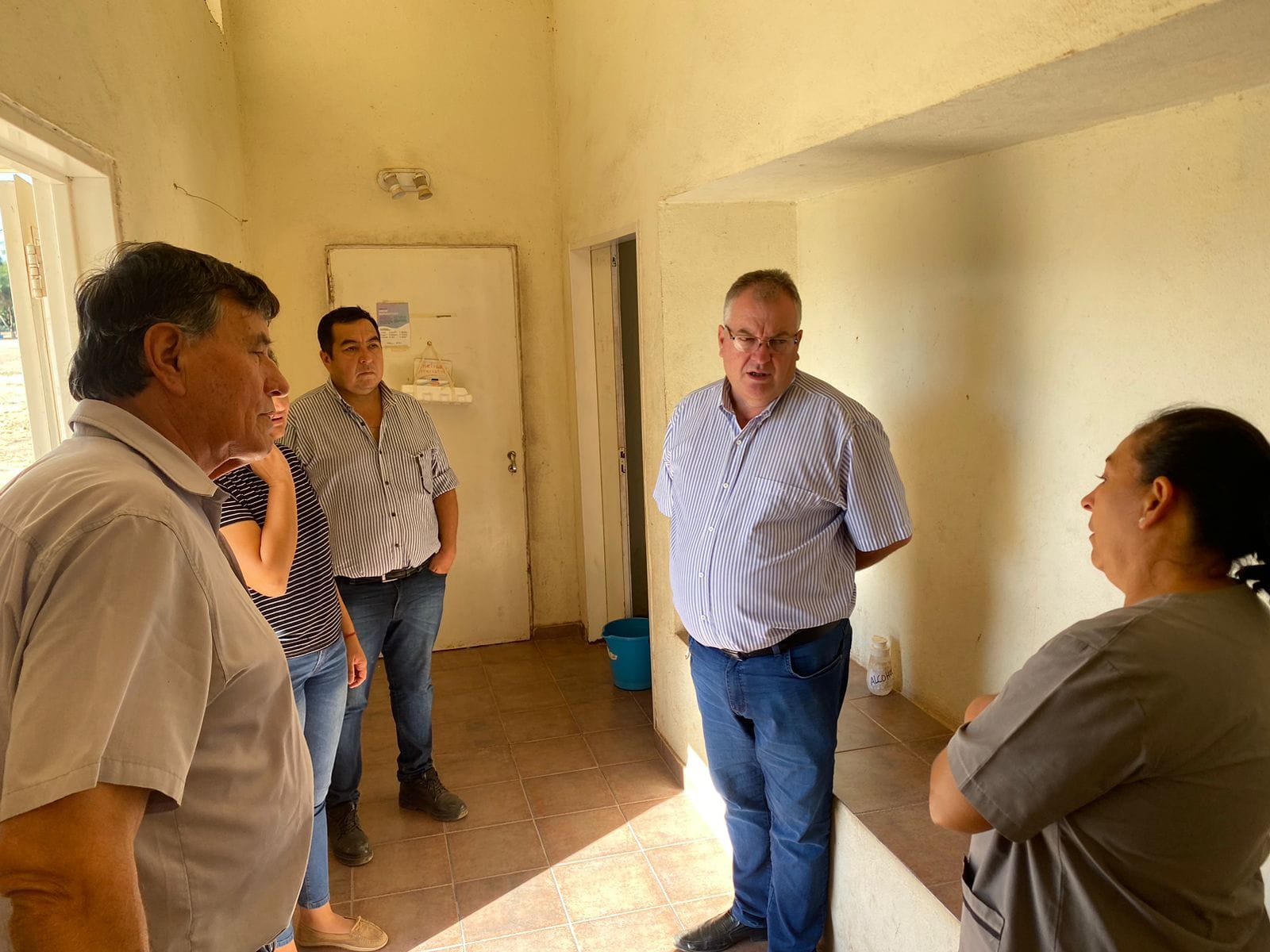 La recorrida incluyó una visita a la escuela EEP N° 872 del Paraje La Rinconada, donde el personal municipal estaba colaborando con tareas de desmalezado en el predio escolar.